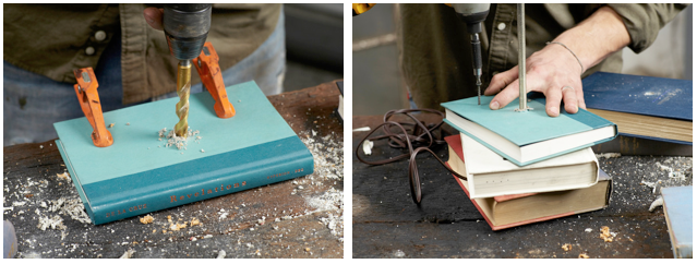 Libros y mas libros…no será porque no tienes libros en casa, en todos los hogares los libros son parte de la familia y siempre nos cuesta mucho deshacernos de ellos, por lo que aprendiste, por lo que te hicieron sentir, recuerdas las risas o el llanto en las noches cuando repasabas sus páginas deseosa de avanzar en la lectura…entregada a esa historia que ya era un poco tuya… como ver tiempo después esa portada y abandonarla en mitad de la fría noche bajo la oscuridad de un contenedor de papel… Prefiero imaginar a los libros protagonistas de mi espacio … que se queden aquí, conmigo … y para ello que mejor que darles otra utilidad…en este caso la idea es transformarlos en lámpara de mesa, con toque British y un poco vintage.