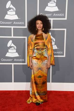 Peor Vestidas. El traje estampado de Esperanza Spalding le dio un toque muy llamativo. Un diseño de fina seda, en colores tierra, que destacaba los mejores atributos de su cuerpo, pero para el cual la amplia chaqueta que lo complementaba, en el mismo material, ocultó lo mejor de este diseño.