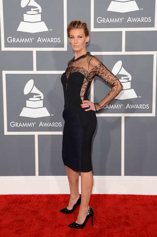 Mejor Vestidas. Enfundada en un sensual diseño de J. Mendel, Faith Hill, se robó todas las miradas. A pesar de lucir un traje negro a media pierna, la transparencia bordada sobre su pecho, escote, brazos y en los costados, la hacían verse muy sensual.